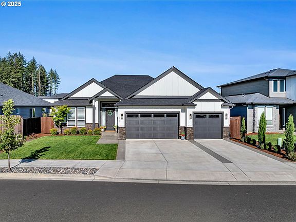 Why wait to build when you can have Better-Than-New construction with this Cascade West 2022 built ranch style modern farmhouse?! Avoid the stress and long wait and move into this turn key beauty, upgraded galore with high end finishes and quality craftsmanship. Soaring ceilings throughout this great room floorplan features gas fireplace and custom built ins, HUGE chef's kitchen, oversized island with farm sink and a dream walk in butler's pantry. Wide hallways lead to 3 nicely appointed bedrooms and a bonus office/den/playroom. Primary suite with coffered ceilings, designer en suite bathroom with heated tile floors, large soaking tub and walk in tile shower. Dual vanities and XL walk in closet. Laundry room has concrete countertops, utility sink and shiplap mudroom storage bench. Oversized 3 car garage with 220v and Tesla Lvl2 charger. Spacious covered patio out back and a fully fenced backyard with raised beds. Si Ellen Farms neighborhood with quality builders all around and a community park with playground, pickle-ball and basketball courts, paved paths and more. Hockinson Schools!! Check out the video in the link!