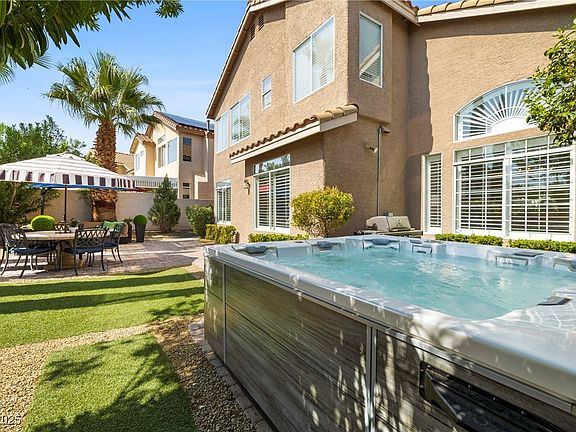 BEST IN CLASS! This Summerlin stunner is that RARE PERFECT HOME! Step into an absolutely gorgeous home on an elevated corner lot that has been meticulously remodeled for the owners and is not a flip! Fabulous kitchen with KitchenAid stainless appliances, Italian marble counters, glass front 42" cabinets with RH hardware, gorgeous backsplash and more! This four bedroom, three bath beauty features travertine tile throughout the first floor, hardwood upstairs, six inch baseboards and shutters throughout! The upstairs primary bedroom has vaulted ceilings and large windows making it so light and bright! The remodeled primary bathroom has a free standing tub, separate glass shower and two big windows for tons of natural light! And wait till you see the gorgeous hall bathroom and secondary bedrooms! Add in the beautiful, relaxing and private backyard perfect for entertaining plus a three car garage and voila!, you have the PERFECT HOME! Truly an exceptional home you won't want to leave!