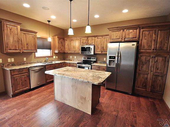 Outstanding 5 bed, 3 bath Ranch home nestled in popular Cinnamon Ridge. Quality, Bok-Nel custom built construction. Open concept main level opens to the remarkable Great Room showcasing the coffered ceiling and fireplace. Generous eat in kitchen, set on beautiful hardwood flooring, features plentiful knotty alder cabinets and pantry, island, stainless steel appliances plus additional dining space offering convenient slider to deck access. Desirable 3 beds, 2 baths on the same level including the master suite with walk in closet, tiled walk in shower and double vanity. Main floor laundry/mudroom. Entertaining is a breeze in the spacious lower level family room equipped with fireplace and impressive wetbar featuring a two tier counter, sink and refrigerator. Two beds and full bath complete the lower level. Triple stall garage offers additional storage. Enjoy the huge private backyard, covered deck and tasteful landscaping surrounding the exterior of the home.