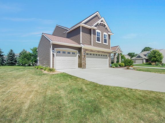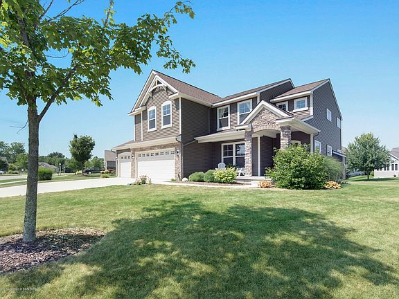Built by Eastbrook Homes in 2015, this stunning 4 bedroom, 2.5 bathroom two-story, features 2,419 above grade finished square feet of quality, custom living space. Gorgeous wainscoting invites you into a foyer and a flex room, which could be used as an office, sitting room, or formal dining room. An open floor plan including a large great room with a beautiful fireplace, an upgraded kitchen with a large island, granite counter tops, hardwood flooring, and a spacious pantry complete the main level of this amazing home. Upstairs, a large master suite is a retreat from the bustle of life; featuring a master bath with a double bowl vanity, tile shower with Euro door, and a large soaker tub. This home has a three car attached finished garage, underground sprinkler system, and beautiful garden level windows in a expansive basement. Welcome to 8206 Arboretum Lane; a striking model home located in the Grand Ledge School District.