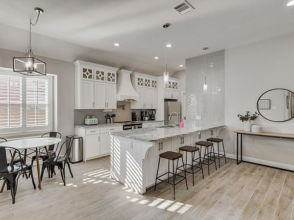 You'll love your gorgeous kitchen that is spacious and completely open to the main area, so everyone can still be together. Beautifully designed with custom cabinets, gorgeous countertops, and modern tile backsplash, you'll love using this kitchen. And it comes equipped with everything you need, from cookware to utensils, so you can even cook up your own fresh meals if you get tired of eating takeout. You'll also have many options for where to enjoy your meals. The kitchen has a breakfast area and barstools at the counter and the dining room has space for more people to eat together among the warm decor.