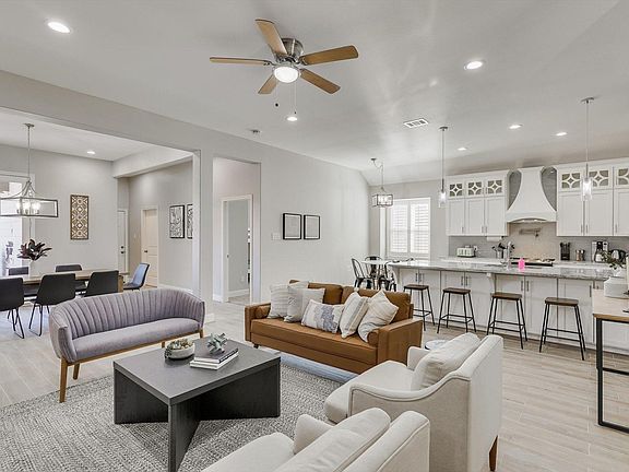 Your vacation home will be a newer build home with a charming and picturesque exterior. You'll have a 2-car garage to park your car away from the sun. As you step inside, you'll easily be able to see the care that was put into making this home a luxury one. The high-end finishes are stunning and the open-concept design makes the space feel bright and spacious. The space is luxurious but is warmed up by the furniture and decor, making it still feel like a home. The living area has beautiful decor, comfy furniture, and lots of warmth, which is key to any good living room.