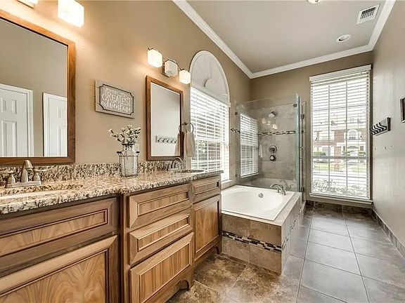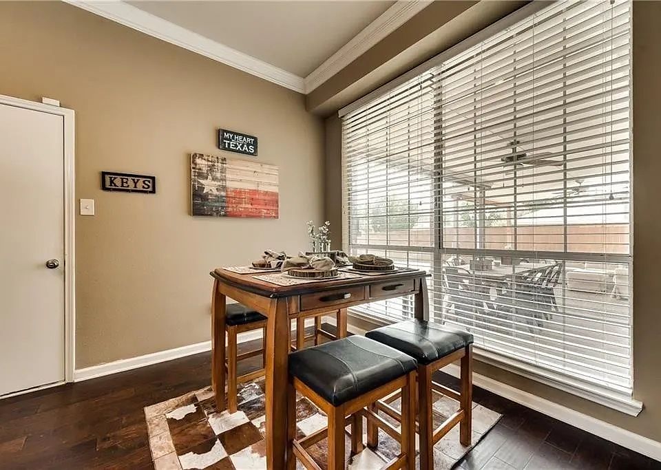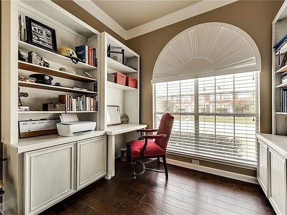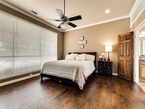This bright and inviting home features real wood flooring throughout, complemented by an open floor plan and numerous stylish updates. The kitchen boasts granite countertops, custom 42-inch cabinets, stainless steel appliances, and a built-in microwave. The bathrooms have been tastefully remodeled with large frameless glass showers, while the primary suite includes a spacious bedroom, walk-in closet, double vanity, and garden tub for ultimate relaxation. Additional highlights include a newer roof, 2-inch blinds throughout, crown molding, recessed lighting, ceiling fans, gas log fireplace, and two dining areas. Enjoy outdoor living with a large covered patio designed for entertaining. 5 ton Carrier AC.