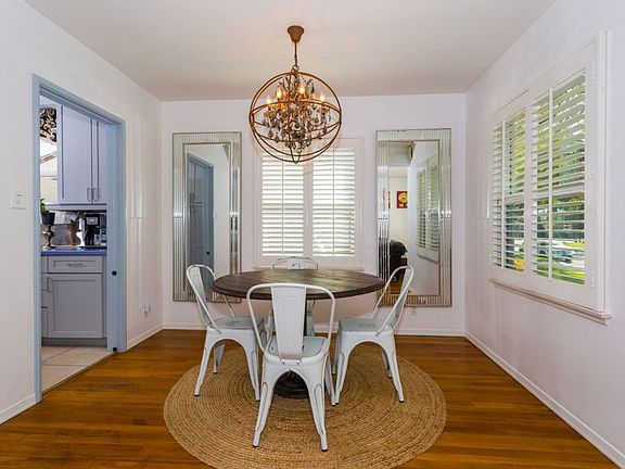 Glorious gardens, the shade of a mature Magnolia tree, and a friendly sitting porch begin this experience of fine Westchester living. Inside, plantation shutters frame the windows that illuminate the open living room with fireplace and an adjacent dining room with a stylish light fixture. The spacious and eclectic eat-in kitchen features stainless steel appliances, including a Viking gas cooktop, and an expansive breakfast bar accented by chic pendant lighting. A master bedroom suite provides space, comfort and plenty of natural light with soaring ceilings, a spa-like full bath, a walk-in closet, and two sets of French doors opening out to a private patio on one side, and an inviting yard with sprawling lawn on the other. And not to be missed is the large bonus room situated just off the backyard, providing added entertainment space for your guests. Back inside, two large bedrooms with another remodeled full bath with cool glass tile accents complete the layout of this fabulously delightful, spacious and vibrant home.