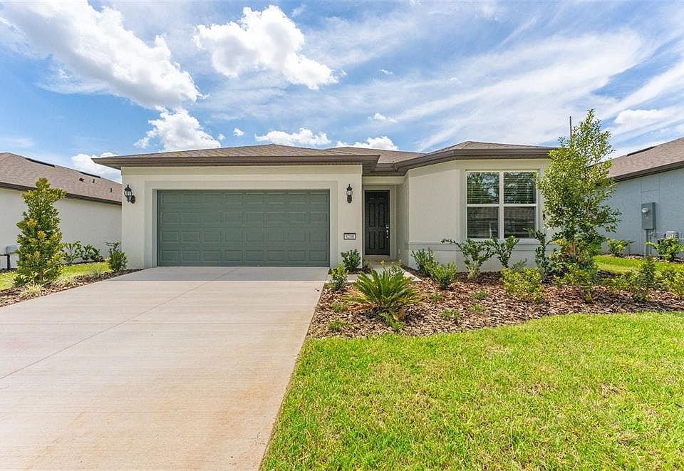 One or more photo(s) has been virtually staged. Move in Ready Available NOW!! Enjoy all the benefits of a new construction home in the serene setting of Ocala, FL's horse country, with an age-restricted, fully amenitized lifestyle at Del Webb Stone Creek. This is the active adult community you've been looking for, with amenities that include an 18-hole championship golf course, a full restaurant and bar, indoor and outdoor pools, sports courts, and so much more. Our sprawling amenities, clubs, and classes will fill your retirement days with activities to make new friends and memories. This popular Crestmere floor plan, with an open-concept home design, has all the upgraded finishes you've been looking for. The gourmet kitchen showcases a spacious center island with a large single-bowl sink, white cabinets, 3cm quartz countertops with an 8”x9” white hexagon tiled backsplash, and Whirlpool stainless steel appliances, including range, microwave, refrigerator and dishwasher. The bathrooms have matching white cabinets, quartz countertops, and comfort height commodes, and the Owner's bath has dual sinks and a walk-in shower with heavy glass shower door. There is luxury vinyl plank flooring in the main living areas, 12”x24” tile in the baths and laundry room, and stain-resistant carpet in the bedrooms. This home also features a convenient laundry room with Whirlpool washer and dryer, a covered lanai, a large kitchen pantry, and a 2-car garage with a 4’ extension and a utility sink. Additional upgrades include 4 LED downlights in the gathering room, pendant prewiring in the kitchen, upgraded door hardware, whole house faux wood blinds and a Smart Home technology package with a video doorbell. Enjoy peace of mind with Pulte’s transferable, 10-year Limited Structural Warranty that covers materials and workmanship in the 1st year, workability of plumbing, electrical, HVAC, and other mechanical systems through the 2nd year, various types of water infiltration and internal leaks through the 5th year, and the structural integrity of the home through the 10th year. Plus, we’re currently offering limited-time incentives and below-market rates!