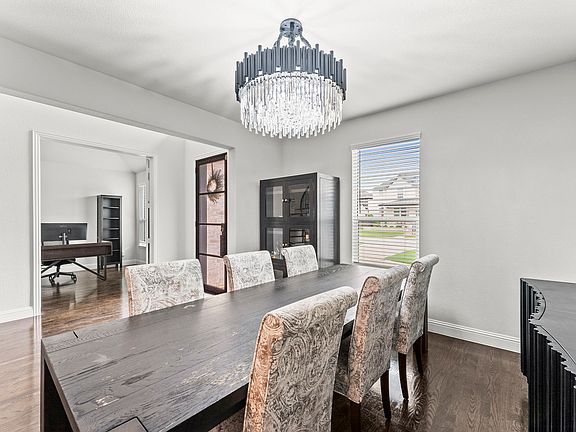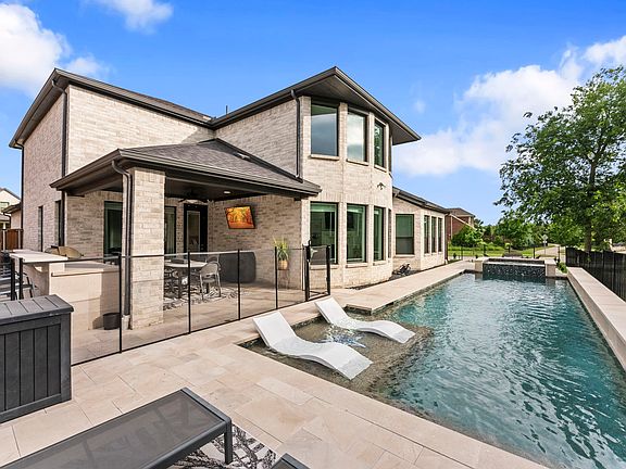 Gorgeous Luxury Home with Designer Finishes, Outdoor Oasis & Creek Views! Welcome to this stunning, upgraded home located in a highly desirable, intimate neighborhood, zoned to the top-rated McSpedden Elementary. Nestled on a large corner lot with no backyard neighbor, the property backs to a scenic walking trail and creek, offering rare privacy and peaceful views. Inside, enjoy hardwood floors throughout the first floor, a striking stone-cast fireplace, and elegant chandeliers in the foyer, formal dining, and living room. The open-concept design flows beautifully for everyday living and entertaining alike. This spacious layout features 5 true bedrooms, a dedicated office, 4 full baths, and expansive game and media rooms. A convenient Jack-and-Jill bath upstairs adds thoughtful function for families or guests. The luxurious primary suite is a true retreat, boasting a dual shower head in the spa-like bath and a custom-designed walk-in closet that blends style with smart storage. Step outside to your own private resort: a custom Riverbend Sandler pool that spans the width of the home, complete with a hot tub, built-in outdoor kitchen, and ample side yard for play or relaxation. Built-in electric vehicle (EV) charging station in 2 car garage. This exceptional home offers luxury, comfort, and convenience—a rare find in one of Frisco’s most sought-after communities.