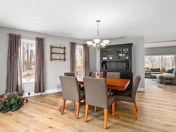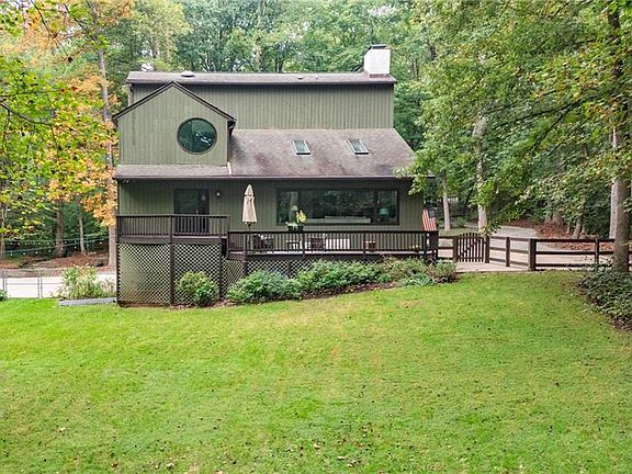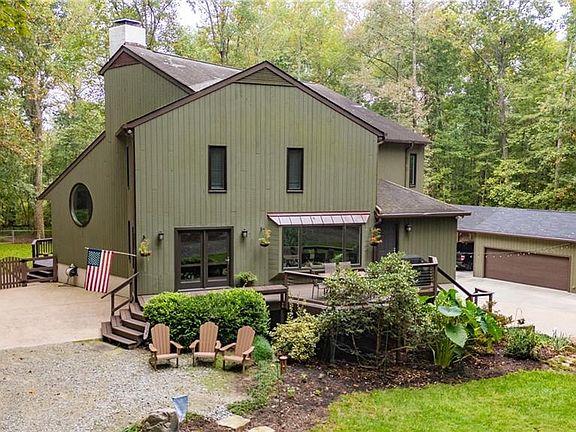 Amazing privacy in this updated home nestled on 3 acres with mature landscaping & a relaxing stream in the back of the property. Step into the stunning great room with soaring ceilings, a striking stone fireplace, & serene private views. The kitchen features modern updates, with granite countertops & walk-in pantry, refrigerator to remain, offering style & functionality.The main level incl a dining room, a bedroom with an en-suite bath, & an office with built-ins. The basement provides a spacious recreation room & exercise room. Upstairs, enjoy spacious bedrooms, and a gorgeously remodeled primary bath. This home boasts all-new upgraded custom windows throughout, upgraded LVP flooring on the main level, an expansive deck overlooking the private backyard, a front porch with composite decking, a sealed crawlspace, tons of storage, a three-car detached garage, and more! Low county taxes, lots of privacy, yet close to city amenities! An extensive list of features and upgrades is available.