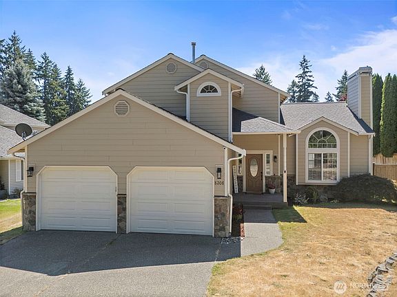 Gorgeous & move-in ready! Soaring vaulted ceilings grace the open concept Living space, welcoming you inside. All appliances stay in Kitchen w/pantry & tiered peninsular counter w/eating bar. Two gas fireplaces! French doors open into spacious Primary Suite complete w/walk-in closet & private bathroom w/soaking tub, dual sinks, & separate walk-in shower. Two guest bedrooms upstairs plus one on main level (possible home office?). Bay windows; two-tone paint; white trim; accent walls. Sitting on shy 1/4 acre parcel, spread out in the fully fenced back yard w/over-sized patio (perfect for summertime grilling). Tucked away on dead-end end street, minutes from Chambers Bay, shopping, & schools. Easy access to I-5 & WA-16 for commuting. No HOA!