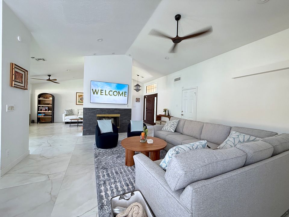 Home is completely remodeled with brand new bathrooms, furniture, bedding and a fully-stocked spacious kitchen with dining area to entertain.