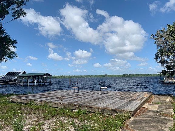 Fantastic location with direct frontage on St. Johns River, 2 doors away from boat launch. Quiet subdivision with amazing oak trees. Endless views of the river with bulkhead and plenty of outdoor living space. Huge wood deck looking over the river perfect for fishing or relaxing. This is a perfect fishing cottage or future new home.
