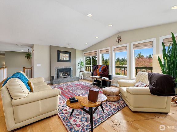 Perfectly set on a quiet cul-de-sac offering sunset views, you'll love this thoroughly upgraded home in the heart of Edmonds! Hardwood floors greet you as you enter into the open plan featuring living room with vaulted ceilings, recessed lighting & gas fireplace open to kitchen w/quartz countertops, stainless appliances, under-cabinet lighting, walk-in pantry & sliders out to large composite deck. Main level primary suite w/en-suite bath, WIC, & French doors out to deck. Lower level features large family room w/gas fireplace, built in cabinetry, 4th bedroom & 3/4 bath! Spacious flex area for den/ gym/craft room. Large lot & long driveway w/plenty of parking. Steps to Five Corners & minutes form Yost Park, Pine Ridge park & downtown Edmonds!