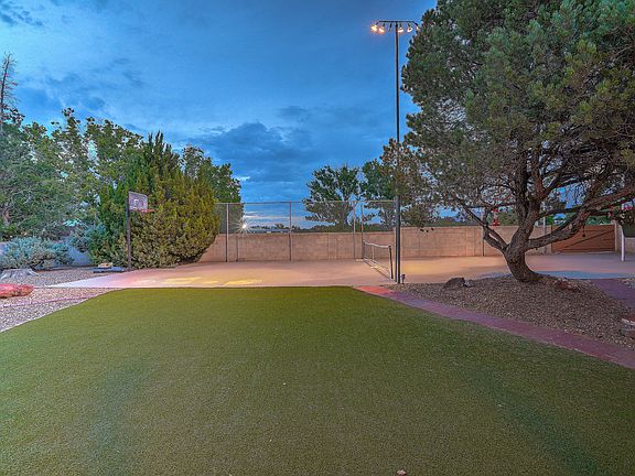 Open House, 10/4 12-3pm &10/5 12-3pm. Discover the comfort & style in this beautiful custom designed home. Step inside & you instantly feel it's cheerful ambiance. The spacious living room/dining room combination & family room are ideal for entertaining & memorable gatherings. Imagine enjoying a relaxing evening in the family room with the charming fireplace bordered by built in bookcases. Open the door to the generous covered back porch perfect for coffee & enjoying the sunrise over the Sandias. The amazing views add to the massive backyard with a lighted recreation court for a variety of sports-pickleball anyone? Plus backyard access! As a bonus-there is a large basement with a pool table & loads of space which make it truly unique. Imagine the possibilities in this enchanting home!