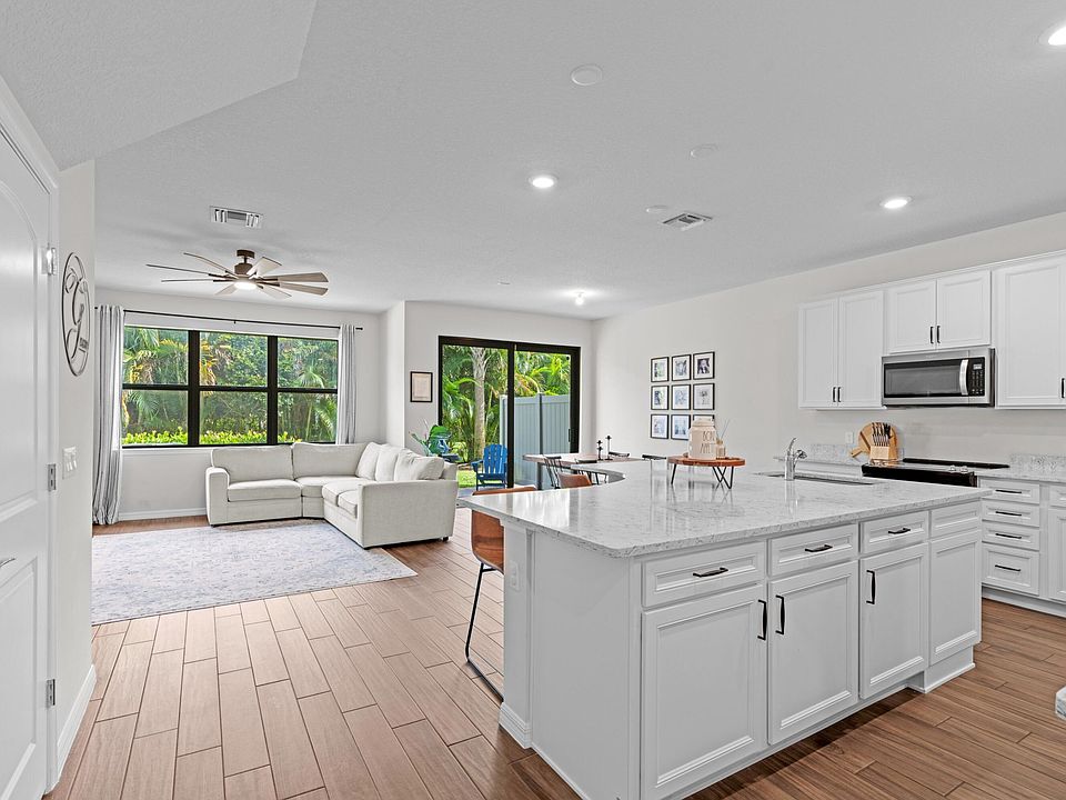 Beautiful townhome in The Fields! This 3 bedroom, 2.5 bathroom home built in 2021 offers a thoughtful layout with modern finishes throughout. The open main level features wood-look tile flooring and a kitchen with quartz countertops, creating a stylish yet practical space for daily living and entertaining. Upstairs, three comfortable bedrooms provide plenty of room, and the two car garage offers added convenience. Located in The Fields, residents enjoy access to resort-style amenities including pools, a clubhouse, fitness center, playgrounds, and green spaces. Just minutes from the Florida Turnpike, the community offers easy access for commuting north or south.