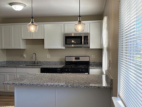 Modern white cabinetryGreat natural lightQuartz countertopsFull washer and dryer
