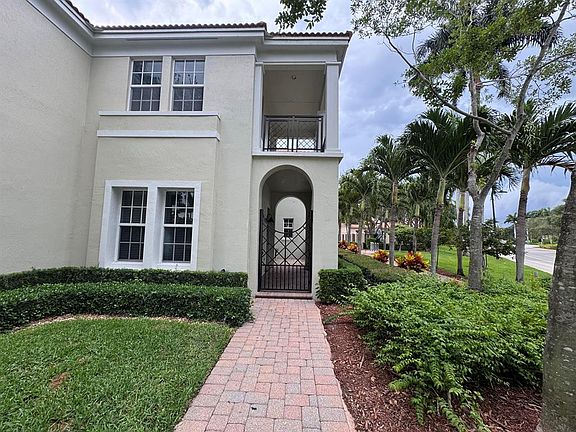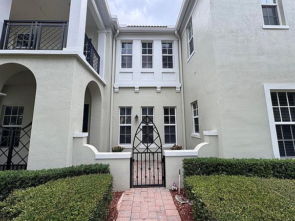 This meticulously, spacious, end unit 3-bedroom, 2.5-bath townhome offers the perfect blend of comfort and convenience in a beautiful, well-maintained community. Enjoy generous living spaces inside and out! The kitchen boasts warm cabinetry, granite counters, stainless steel appliances, an island with breakfast bar and tile flooring throughout. Two living spaces living/family room and dining room and a half bath on the first floor. Open, but private gated patio right out of your front door. The primary bedroom is a spacious retreat with 2 large walk-in closets, an ensuite bathroom, dual sink vanity, soaking tub, and separate shower. Open the door to a spacious balcony and enjoy the tropical palms around this unit. Two additional bedrooms and bath, a second floor laundry room with