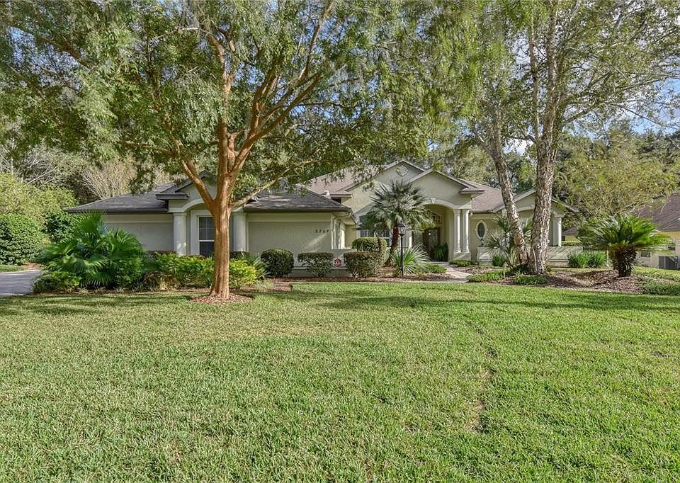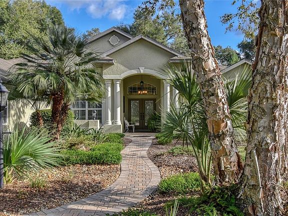 Welcome to this exceptional residence in the highly desirable Grand Park community, perfectly situated on a beautifully landscaped half-acre lot that adjoins a tranquil natural preserve. From the moment you arrive, the home's quality and craftsmanship are unmistakable featuring a brick paver driveway, winding paver walkways, and a grand entry with double leaded-glass doors. Inside, the foyer opens to elegant formal living and dining rooms highlighted by soaring 10+ foot tray ceilings with crown molding, French doors, plantation shutters, and rich hardwood flooring. Every space is thoughtfully designed to impress while remaining warm and inviting. At the heart of the home, the gourmet chef's kitchen seamlessly connects to the breakfast nook and family room, making it ideal for both daily living and entertaining. The kitchen boasts abundant custom cabinetry, Black Galaxy granite countertops, newer stainless-steel appliances, a center island with gas cooktop, double wall ovens with convection, microwave, and a spacious walk-in pantry. The adjoining family room features plantation shutters, a tray ceiling, a gas log fireplace, and ample wall space for a large entertainment system. The private bedroom wing offers generously sized guest suites and a beautifully appointed guest bath. The luxurious primary retreat spans nearly 800 square feet and is a true sanctuary, featuring a tray ceiling, bay window, solid tongue-and-groove bamboo flooring, dual custom walk-in closets, a dual-sink vanity, garden tub, and a walk-in shower. Throughout the home, expansive windows and French glass doors frame breathtaking views of the lush, tropical surroundings, creating a seamless connection to the outdoors. Step outside to your private resort-style oasis complete with a custom pool and waterfall, salt chlorination system, and a state-of-the-art 110,000 BTU inverter electric heat pump for energy efficient year-round enjoyment. The oversized 556-square-foot screened lanai features brick pavers, a summer kitchen, and ample space for outdoor dining and entertaining. Additional highlights include a newer roof and two new AC systems installed in 2022, a spacious laundry room, and an oversized garage with abundant storage, cabinetry, and a workbench. Located in the charming Rainbow Springs community of Dunnellon, residents enjoy access to the world-famous Rainbow Springs River, a private community park, and numerous amenities. Conveniently situated within 30 minutes of the Gulf of Mexico and Ocala home to the World Equestrian Center this home offers the perfect blend of luxury, nature, and lifestyle. Come experience the very best of Florida living!
