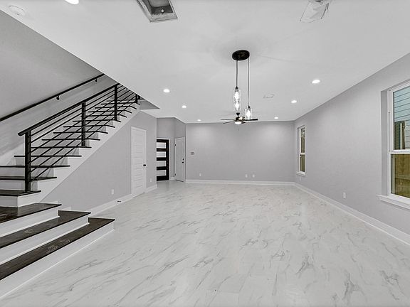 ALL APPLIANCES INCLUDED! No HOA, and just 8 miles from Downtown HOU this 3-bedroom, 2.5-bath rental home with a 2-car garage features a spacious open-concept living area with vinyl plank flooring, recessed lighting, and large windows for natural light. The kitchen includes a generous island with quartz countertops, subway tile backsplash, linear pendant lighting, and plenty of cabinet storage. The primary suite offers a walk-in closet and a modern bathroom with dual vanities, a glass-enclosed tiled shower, and a soaking tub in a sleek black-and-white design. Additional features include a fully fenced backyard and a front-facing 2-car garage.