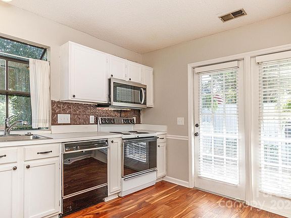 Desirable location convenient to South Park, Uptown and easy highway accessibility. Enclosed Private Patio w/garden area & storage room. Soft welcoming colors (plantation shutters and moldings). Lower level features family room w/vaulted ceiling, new paddle fan, gas logs; dining area w/wood floors & wet bar; kitchen also has engineered hardwoods; half bath and laundry area. Upstairs primary w/bath & add'l bedroom w/full bath. One car garage & one parking space. Unit is at entrance of complex & sellers have priced accordingly for updating & proximity to Park Road. Home has been inspected & appraised. Community features in-ground pool; fitness center; firepit area; outdoor lighting & dog friendly. Water, Sewer & lawn maintenance included in HOA fees. Parking lots & streets sealed 2022. Roof (2023). New:Hot water heater/Pressure Regulator value (10 year warranty); disposal; Master water value (garage) 18 months old. See tour: https://catch-light-studio.seehouseat.com/2271520?idx=1