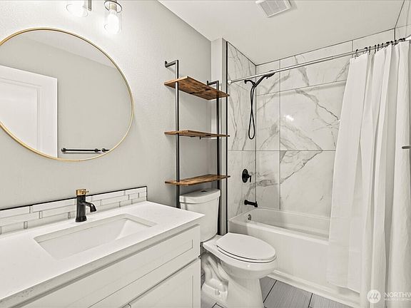 Welcome to this beautifully remodeled corner lot home, perfectly perched for natural light & privacy. Endless upgrades include a modernized kitchen, a heat pump to keep you cool on hot days, a new roof, siding, electrical, plumbing, windows, doors, water heater & water line. Just off the updated kitchen, the separate dining room opens to a sprawling, fully fenced backyard—ideal for summer BBQs, gardening, and outdoor entertaining. Extra large living room w/fire place offers a creative canvas while the basement offers abundant room for storage, projects, or parking or conversion to additional living space. Best of all, you’re just steps from Evergreen Rotary Park, the lively farmers market, summer shopping & the fast ferry & ferry terminal!