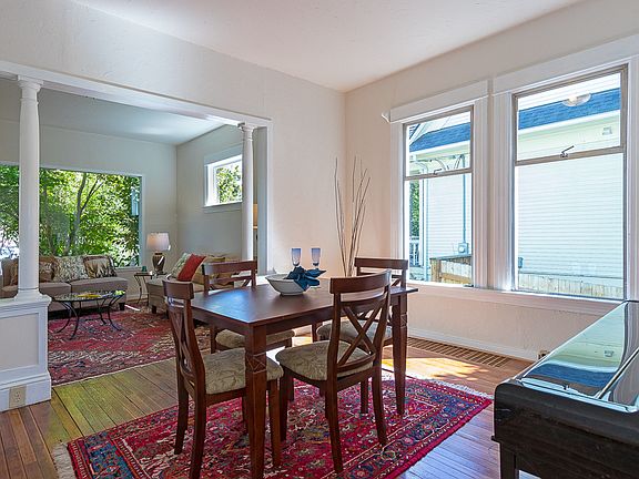 Classic Craftsman in the heart of Madrona-lots of perks! City & sunset views, fantastic yard w/ well-tended gardens, berries to basil ready to harvest, chickens happy to stay. Traditional design & finishes, tall ceilings, fir flrs, sculpted millwork. Light-filled spaces, lots of picture windows, formal dining, cheerful kitchen that opens to sun room for year-round enjoyment of views, covered gazebo for star-gazing. Quiet street, parking space off rear alley. Fresh, clean, ready for new chapter.