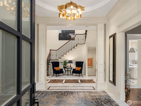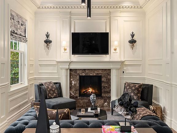 Nestled on one of Washington Park's most highly-sought after streets, this Neoclassical two-story home epitomizes refined luxury and timeless elegance. The home features a grand columned portico, marble floors, a curved staircase, and a double-height ceiling. Well-appointed interiors enhance the sense of space and style, creating an inviting yet luxe atmosphere. The main floor boasts an opulent living room with a fireplace, formal dining room, and a gourmet kitchen with stainless steel appliances. This home offers five bedrooms, including a master suite with a spa-like en suite, plus a media room, and a two-car garage. The front and back bluestone terraces, complete with plantings and a fire pit, provide a serene outdoor retreat.