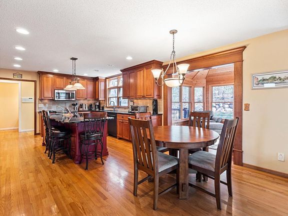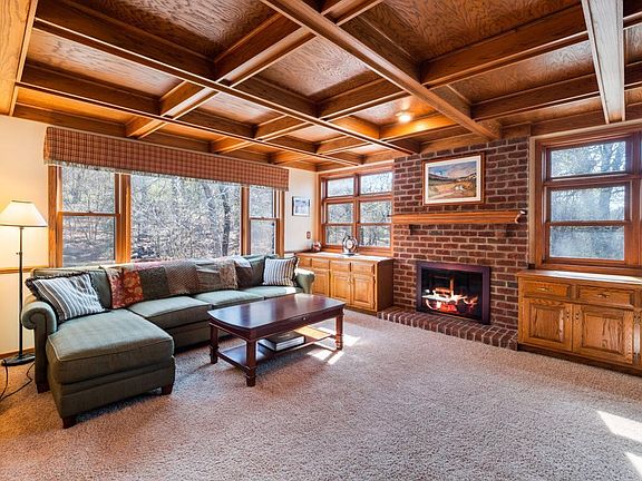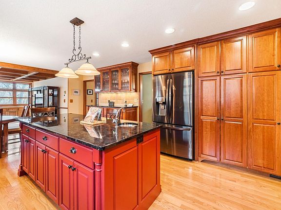 Welcome Home ~ This exceptional 2-Story with distinctive style and alluring spaces is sure to suit your lifestyle! Custom-built features include: granite countertops, cherry cabinetry, hardwood floors, 3 fireplaces, coffered ceilings, and a vaulted 4-season porch. The generous eat in kitchen with large island & newer stainless appliances, complemented by a formal dining room and living spaces, makes entertainment a delight. Owner's suite w/walk-in closet, gorgeous private bathroom with free-standing tub, walk-in shower and dual vanities; 1 of 4 bedrooms on the upper level. The lower level offers a large L-shaped family room, 5th bedroom & 4th bath, an abundance of space for family and guests! Enjoy the serenity of your private wooded homesite on a cul-de-sac. Prime location in desirable Woodlands with easy access to interstate & shopping, award winning 196 schools. With newer AC, water softener, garage floor, and gutters, this home is ready to enjoy!