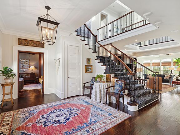 821 Bridgetown Pass is truly a one-of-a-kind home nestled in Hibben at Belle Hall in Mount Pleasant. This 5,300 sq. ft. custom-built masterpiece was thoughtfully designed to feature breathtaking long range marsh views from virtually every room in the home. Inside, the expansive floor plan welcomes you with stunning open ceilings and beautiful natural light. To the right of the entry, you'll find the ''Scotch Room'' which features an impressive 150-year-old mahogany door with custom stained glass from England. Walnut, cherry and mahogany parquet floors tie in beautifully with the antique door and showcase a level of unmatched design that you will find throughout the home. The stunning chef's kitchen offers beautiful marsh views and overlooks the den and one of two screened-in porches with a dual fuel outdoor fireplace. This space is an entertainer's dream boasting Calacatta Gold countertops, a wine cooler, ice maker and a custom built Lacanche stove from France. Additional highlights include a porcelain farmhouse sink and an oversized refrigerator and freezer. Off the kitchen you'll find a spacious pantry and a mudroom with a desk area and an additional refrigerator. The first-floor primary suite features a private screened-in porch, fireplace and a bath equipped with handmade ceramic tile and multiple showerheads. Upstairs you'll find four additional guest bedrooms each with built-in drawers and two expansive bathrooms. There are also two living spaces or flex areas on this floor. The finished room over the garage could be considered a sixth bedroom with its built-in murphy bed with four additional closets. Outside, a wonderful backyard oasis overlooks the amazing marsh views. The spacious yard includes a custom saltwater pool surrounded by travertine stone and a raised vanishing edge spa with a marble brick wall. There's also a convenient outdoor powder room that is accessed from the screened-in porch. Additional features include two Rinnai tankless water heaters, 12 zone audio/visual wiring inside and out, a Lutron lighting control system and hurricane rated triple impact doors and windows. Come experience the best of Hibben living at this spectacular Lowcountry home.
