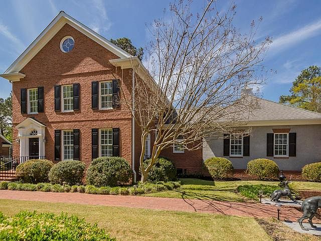 Charming home situated in Aumond Place on Camellia Road. Interior layout boasts 4 bedrooms, 3.5 bathrooms & 3,938 sqft of living space. Inviting foyer, extensive millwork & warm colored hardwood flooring welcomes guests. Formal dining room & wainscoting offers an elegant entertaining space. Gourmet kitchen features: granite countertops, bar seating, walk-in pantry, jenn-air range, stainless appliances, keeping room w/wet bar & breakfast nook. Cozy great room is accented by gas log fireplace & stained wood details. Main & upper level owner's suites w/attached spa bathrooms & balconies. 2 separate office areas, half bathroom, huge heated sunroom, separate laundry room w/sink & cabinetry remain on main level. Located on upper level are 2 additional bedrooms & full bathroom. Rear patios areas & gazebo that overlook pond offer endless outdoor entertaining options along with breathtaking views! Absolutely no stone left unturned with the home! Exclusive living at its finest!