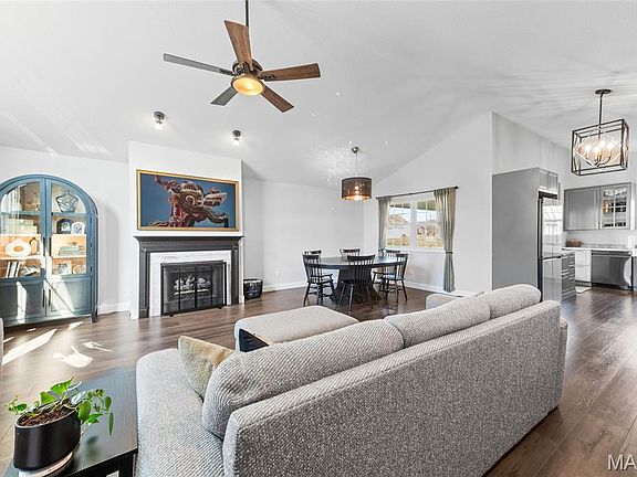 This beautifully updated ranch offers vaulted ceilings, rich flooring, and a cozy gas fireplace in a bright, open-concept living space. The kitchen features updated cabinetry, lighting, and appliances, flowing seamlessly into the dining area — ideal for everyday living and entertaining.