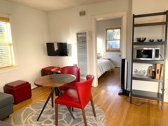 Light-filled 1-bedroom carriage house with a private entrance and a small patio on a quiet street in the heart of Venice Beach - near Abbot Kinney, Beach, Santa Monica, bus stations and rideshare. Thoughtfully furnished for optimal use of the space and comfort: comfortable queen bed with a memory foam mattress topper in the bedroom and soft cotton bedding, anti-allergenic pillows and duvets sofa expands to a queen-sized bed to accommodate a guest. small enclosed patio and a sunny porch kitchen with a fridge, gas range, microwave, electric kettle, toaster as well as pots, dishes, utensils and silverware. bathroom with tub, lush towels and hairdryer. large walk-in closet. flat screen TV iron and ironing board washer/ dryer on property Gas, water, electric included fully furnished, unfurnished possible gas, water, electric included 1 month or longer