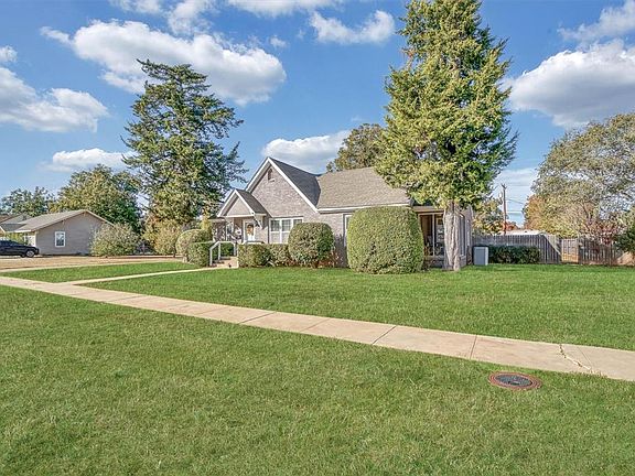 Welcome to 821 E Elm Street, a beautifully restored Craftsman-style home in the heart of Altus. This spacious residence offers 3 bedrooms, 2 full baths, and approximately 2,140 sq ft of thoughtfully designed living space. Built in 1950, the home exudes character with original hardwood flooring throughout, while modern upgrades bring both style and comfort. A gracious living room greets you with abundant natural light, and a cozy den or library offers a quiet retreat — perfect for reading, working from home, or relaxing. The formal dining area flows seamlessly from French doors, making it ideal for entertaining guests or enjoying family meals. The remodeled kitchen is a chef’s delight, featuring granite countertops, sleek cabinetry, a gas stovetop, and even a wine fridge! Down the hall, the split bedroom layout ensures privacy, with two well-appointed bedrooms on one side and a large master suite on the other. Both bathrooms have been updated with modern fixtures, warm finishes, and thoughtful touches. Outdoor living is just as enticing: the home sits on a generous 0.25-acre lot, with mature landscaping, a covered patio, and a detached 2-car garage. There is also a detached building that makes a great office, workshop or studio, with indoor storm cellar access.