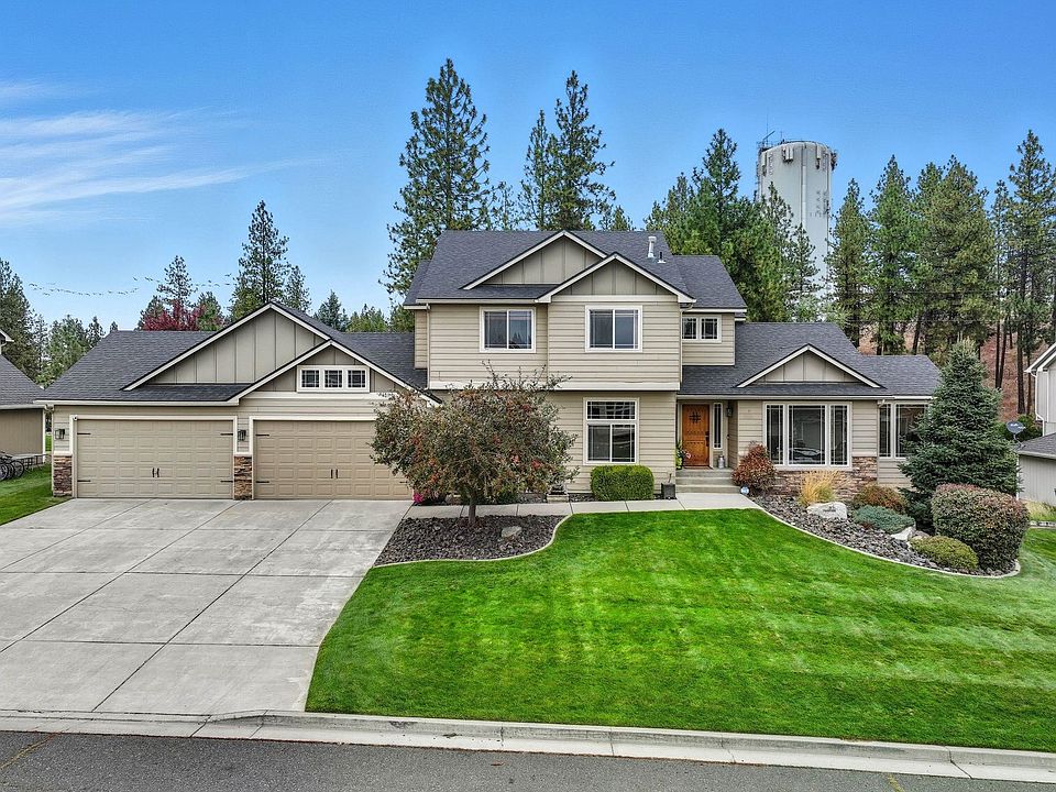 Check out this Colbert gem with mountain views! This 3,500+ sq. ft. home combines privacy, space, and rare extras you won’t find often. Tucked away on a massive treed lot with no backyard neighbors, it offers a private yard and a deck with a hot tub for year-round relaxation. Step inside to an open main level with granite kitchen countertops, a light-filled living room framed by oversized windows, convenient main floor laundry, an additional bedroom/office and a roomy four-car garage for all your gear. Upstairs, there are four bedrooms on the same level, a rare find in Spokane. The finished basement adds even more flexibility, with plumbing already in place for a future bath. Whether you’re hosting, relaxing, or just looking for breathing room, this Colbert home has you covered. Located in one of the area’s most desirable neighborhoods, it truly checks all the boxes.