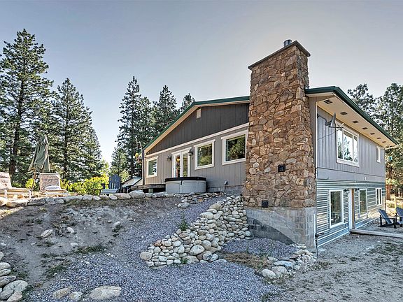 Tucked within tall pines, down a gated private drive, lies an idyllic hobby farm retreat at 821 Fred Burr Rd. The peaceful 20-plus acres are currently home to irrigated and cross-fenced pastures full of domestic goats, geese, and chickens, as well as a plethora of Montana wildlife soaking in the bucolic surroundings of this easy-to-access but remarkably secluded-feeling parcel. Take advantage of sweeping mountain views from the hot tub on the deck or from inside the open-concept living area with walls of sun-drenched windows thoughtfully placed to feel like you're high up in the trees. The remodeled chef's kitchen and main bath feel luxurious and well-considered, incorporating natural textures and a palette complementary to the rural environment. Two light-filled bedrooms and a bath with an over-sized soaking tub complete the main level. Downstairs, you'll find another large bedroom, ample storage, and an open-concept area that can be tailored to fit your individual needs. Outside, there are multiple outbuildings, including Honey's House, which could serve as a small artist studio, outdoor office, or very high-end dog accommodations. Below the home, enjoy complete seclusion in the pergola at the property's private, spring-fed pond. With two wells, a new septic system, as well as substantial improvements to the home and ample acreage during the current owner's caretaking, all located less than 20 minutes from some of the best restaurants and recreation in the scenic Bitterroot Valley, this one-of-a-kind property is certain to quell any yearning for a slice of rural Montana paradise.