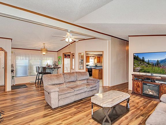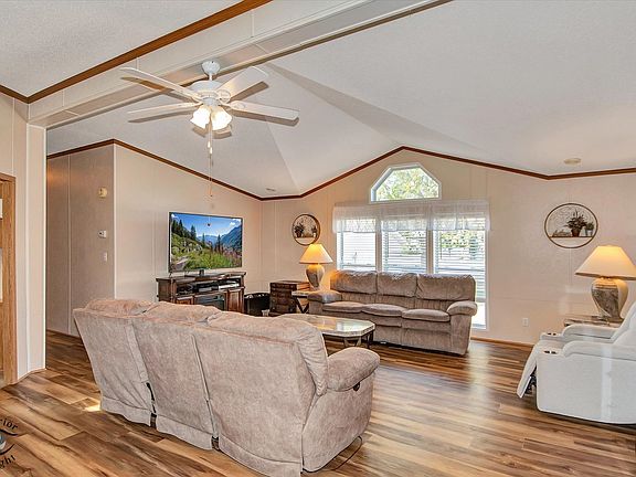 Located in the desirable 55+ Oakridge Subdivision in Manteno, this beautifully maintained double-wide mobile home offers comfort, space, and modern updates throughout. Step inside to find updated vinyl plank flooring and carpet throughout the home. The large, open family room features vaulted ceilings and seamlessly connects to the dining area and kitchen. The kitchen is filled with natural light from skylights and offers ample cabinet space, generous countertops, updated appliances, pantry and a convenient center island. The spacious master bedroom includes a large walk-in closet and a private bathroom with a relaxing soaking tub and separate shower. Two additional bedrooms offer large closets, and the separate laundry room adds everyday convenience. A built-in in-house radio system with speakers in the family room provides added enjoyment and ambiance. Outside, you'll enjoy a patio that opens to the backyard, perfect for relaxing or entertaining guests. The oversized 2.5-car detached garage provides plenty of room for vehicles, storage, or a workshop. Major mechanicals have been thoughtfully updated, with a new hot water heater installed within the past year and both the furnace and AC unit replaced in the last five years. As a resident of Oakridge, you'll also have access to a beautifully maintained clubhouse and all the benefits of living in a friendly, age-restricted community. This move-in ready home is a rare find-don't miss your chance to make it yours!