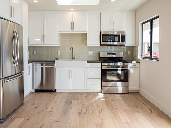 1 Bed 1 Bath - 2 Blocks to the beach! *Garage parking included with hanging storage rack* *In-unit washer/dryer included* *Pets allowed with non Modern remodel! 1 Bed 1 Bath with: Modern white shaker cabinets, grey quartz counter tops, stainless steel appliances (Samsung Fridge, Range, Dishwasher, and Microwave) LG Washer and Dryer included inside unit, skylight in kitchen, bathroom (tub/tile/vanity), engineered hardwood flooring thought. All newer plumbing, electrical, Recessed Lights, Heating, Windows, Roof, Smooth Stucco and Barn wood Siding. Pets are welcomed with additional $500 Non refundable deposit. Minimum one year lease
