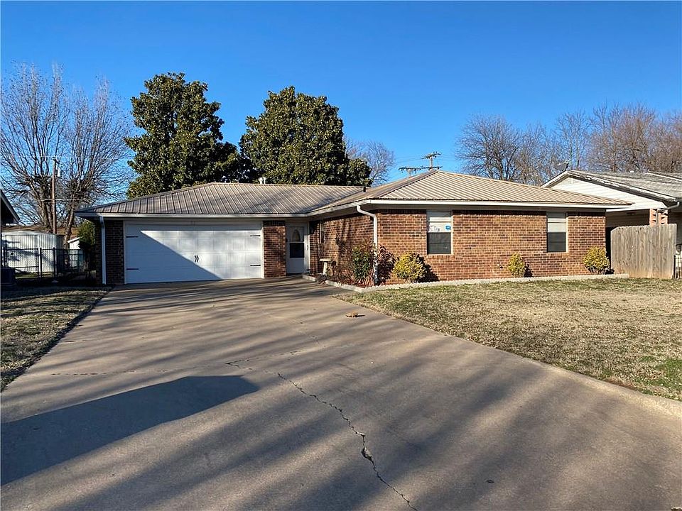 A truly move in ready home. This 3 bed 2 bath brick has been updated, kept wonderfully and is ready for you. You'll love the open concept and the kitchen is a must see. Featuring a beautiful island, stainless appliances while over looking the beautiful living area and gas fireplace (remote included) you will feel right at home. Owner has also installed new flooring. The bedrooms boast large closets and are roomy. The central heat and air was replaced in 2014 and a metal roof was added the same year. All areas feature fresh paint and the over sized garage has had the back area converted to into a large storage area. It also has tile and could easily be converted into living space or kept as a 2 car garage. Outside you will find a maintained yard, easy alley access, a covered patio and plenty of yard for your family. Walking distance to the high school and located in a sought after area, you won't want to miss this one!