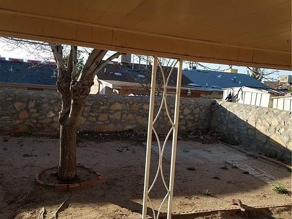 Perfect for small family, retirement home, cozy starter home or income property. Near I-10, Zaragoza, North Loop, Lee Trevino. Security wrought iron doors and windows; front private patio; link fence for security and mature pine trees on front of home; large backyard with covered patio; driveway for 2 cars.