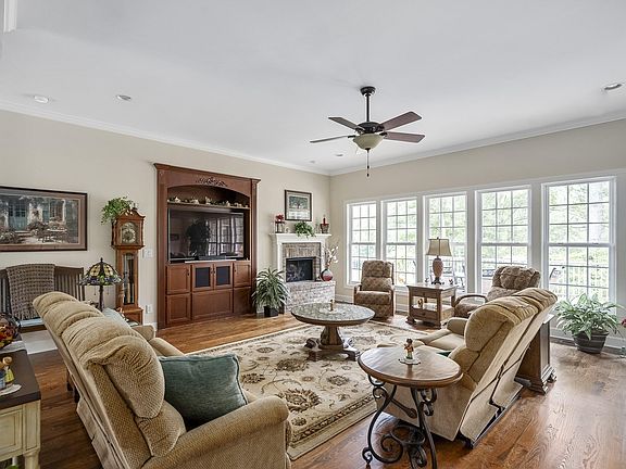 Classic upgrades, a commanding golf view location and the ability to restyle the partially finished downstairs space into whatever one desires defines this 3 Bedroom, 3 1/2 Bath exquisite all-brick Cedar Creek home located on a quiet cul-de-sac ( main level 2875 sq.ft [approx.] plus 955 sq.ft. partially finished lower level). Hardwood floors throughout the living area, smooth ceilings, lovely recessed lighting, a raised hearth and Palladian style windowing are just some of the features that make this home with a 35' x 15' Trex deck super attractive. The wide-open and inviting Foyer, Great Room w/beautiful built-in, Formal Dining room w/wainscoting and the spacious Kitchen / Bayed Dinette all offer 10' ceilings. The well-appointed Kitchen has bright upgraded cabinetry, a 4' work island, extensive granite countering and a convenient walk-in pantry. The Master Suite features a tray-ceiling and bayed Primary Bedroom as well as a sizable ceramic-tiled Bath with a dual sink vanity and attached make-up table plus 2 large walk-in closets. A vaulted ceiling Office / Study offers great flex space attractively amended with Palladian style windows and built-in desk and cabinets. In addition, the split floorplan has 2 good-sized Guest Bedrooms - one has dual sliding door closets and the other a large walk-in closet (excellent storage abounds in this well-designed home). An attractive Jack & Jill Bath is conveniently shared by both of these Bedrooms. A 12 1/2' Laundry has ample cabinetry, an attractive soaking sink and a handy clothes-hanging bar. A definite highlight to this home is afforded by the Trex deck which has magnificent views of the entire par 3, 11th & the teeing area of the 12th holes of the Cedar Creek course. The 955 sq.ft. lower level is accessible by a carpeted stair & is a partially finished wide open area with a completed full Bath. This space can be easily converted to whatever the buyer chooses or left as the temperature-controlled storage / work area it currently represents. Also on the lower level (outside entry) is a 19' x 18' poured concrete work / storage space that, with its high ceiling, makes it a great work shop, tool storage or potting area leaving the 2 car Garage uncluttered. Professionally landscaped with a well for the inground irrigation. When combined with all the amenities Cedar Creek offers, this immaculate home is definitely BETTER THAN NEW!