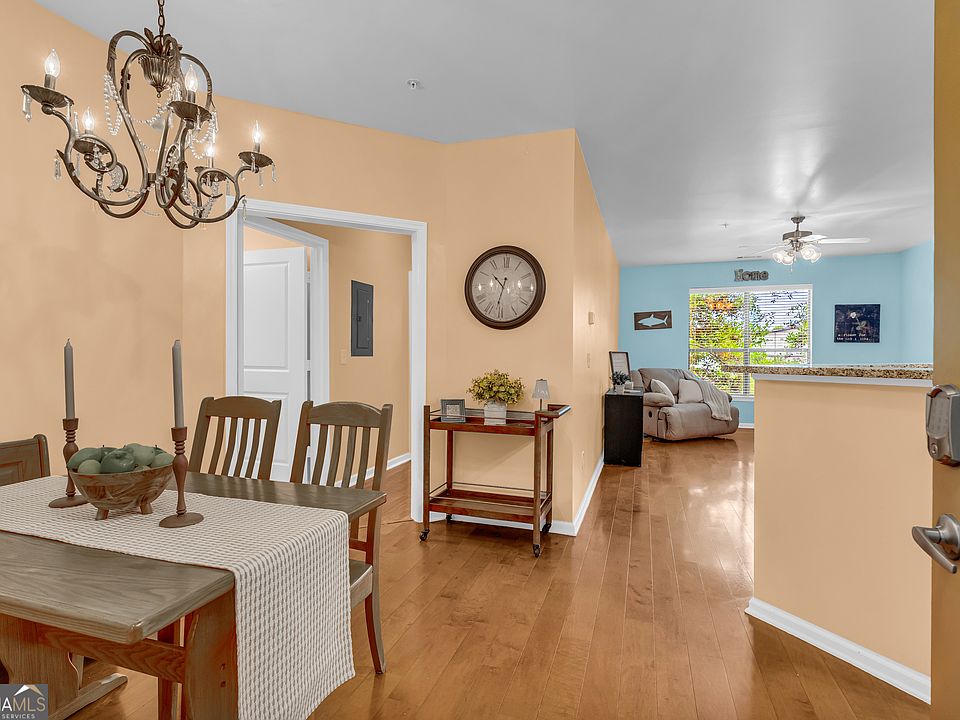 Fantastic location directly on the Beltline. Restaurants, shops and parks are all within a 10 minute walk. This unit is the largest one bedroom floor plan in the building, and offers a sunny view. Kitchen, living room and separate dining area make this open concept unit flow with possibilities. Gorgeous wood floors throughout. Well maintained unit, new HVAC and water heater within the last 5 years. Kitchen appointed with granite countertops and stainless steel appliances. Spacious bathroom has oversized soaking tub, generous vanity and granite countertops. Large walk in closet in primary bedroom. This unit offers gated and covered parking, pool and fitness center, low HOA dues, electric vehicle charging stations, google fiber and a secure package room for deliveries.