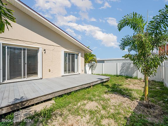 Cocoa Beach 3 Bedroom, 2 Bath, 1 Car Garage, Private Fenced Backyard, & 1 Block to the Beach! 1/2 Duplex with very low HOA fee, $325/month. Single story complexes are not subject to the higher Reserve budgets of other condo complexes so HOA fees can remain low. NO Pet Restrictions & 6 month minimum rental restriction for quiet living without short term rental neighbors. Lives like a single family home without the price point. NEW AC 2022 & NEW ROOF 2023! Tile floors throughout, Kitchen & Bathrooms (wood soft close cabinetry, granite counters), accordion shutters on all Windows & Sliding Doors, & impact rated Front Door & Garage Door, Fencing with gates, Landscaping, Decks in backyard, & more. This unit has been occupied by long term tenants & well maintained. All block construction, 1981 year build, PVC plumbing (no cast iron). HOA pays for Insurance, Landscaping, & Mgt. Quality construction living by the Ocean!