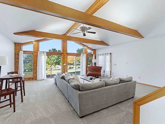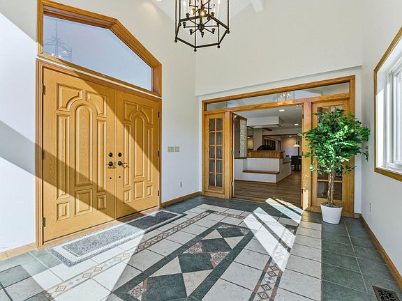 Discover this rare opportunity to own a sprawling estate with endless possibilities! Spanning over 9.43 acres, this property includes a stunning 5 bedroom primary home & a versatile additional structure with a 1-bedroom studio apartment, multiple living & office spaces, & a massive 5-car garage - this property is perfect for both personal, multi-family, commercial or investment ventures! Located outside the city limits with no HOA in Homestead schools, the potential here is truly limitless. As you approach, the inviting tiled foyer welcomes you into this expansive estate. The main floor boasts a large living area with beautiful wood beams & towering windows that flood the space with natural light. The chef’s kitchen is a dream, featuring high-end stainless steel appliances, a spacious island, multiple sinks, a built-in desk, tiled backsplash, & abundant cabinetry & countertops for all your entertaining needs! Adjacent to the kitchen is a lovely dining area, leading into another main living space with a cozy fireplace for relaxation. The main floor also offers three large bedrooms, each with its own full en-suite bath. The primary suite showcases a peninsula fireplace, ceramic tiled floors, a garden tub, dual vanities, & a sizable walk-in closet with organizers. Upstairs, you'll find a versatile loft area with a full bath - ideal for a recreational, guest, or additional bedroom space. The walk-out lower level features two additional bedrooms, wet bar with a full kitchen, dedicated laundry room, theater room, & multiple living areas, perfect for entertaining! The attached 2 car garage is heated with 1/2 bath and epoxy floors + covered carport. Enjoy outdoor living on various patios, a maintenance-free deck, or relax by the private pond next to mature trees - offering a wonderful retreat in your own backyard! The additional structure includes a large 5-car garage, any car enthusiast’s dream, along with a main-floor 1-bedroom studio apartment with a full kitchen, living area, & bath with stackable washer/dryer. Upstairs, the building features multiple conference rooms (or bedrooms), additional living spaces, & a full bath & kitchen, & full wrap around deck making it an ideal space for a home office, guest quarters, or rental potential. This versatile property lends itself to a range of uses from personal estate, multi-family living, to commercial development or investment opportunities within at such an amazing and convenient location in Southwest Fort Wayne.
