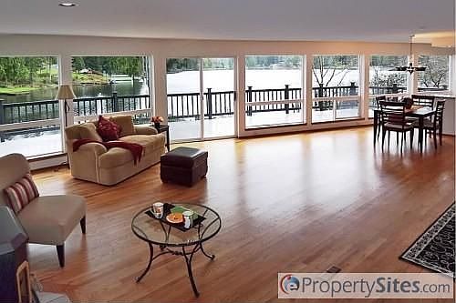 Spectacular custom waterfront. Imagine wake-boarding, swimming, fishing & entertaining your friends at your own private beach house. Featuring a boat house, boat launch, dock, approx 67' of sandy beach/waterfront, level yard with irrigation + RV/boat parking! Enormous windows with views from every room! Extensive use of hardwoods & tile flooring, master bed w/5-piece bath, stamped concrete patio, hot tub & custom staircase. Downstairs guest retreat + entertaining lair. One of a kind!