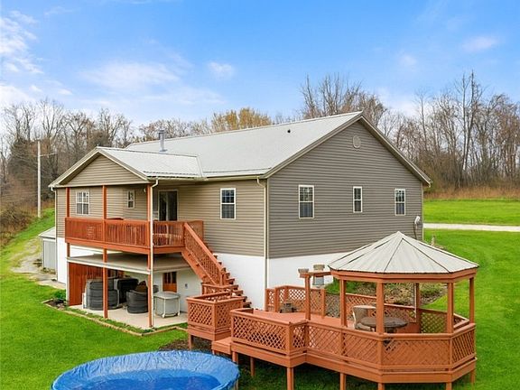 Open floor planExpansive back deckNewer stainless steel appliancesHot tubQuiet partly wooded acresBeautiful entrywayInsulated tree blind
