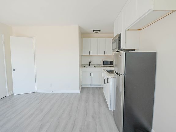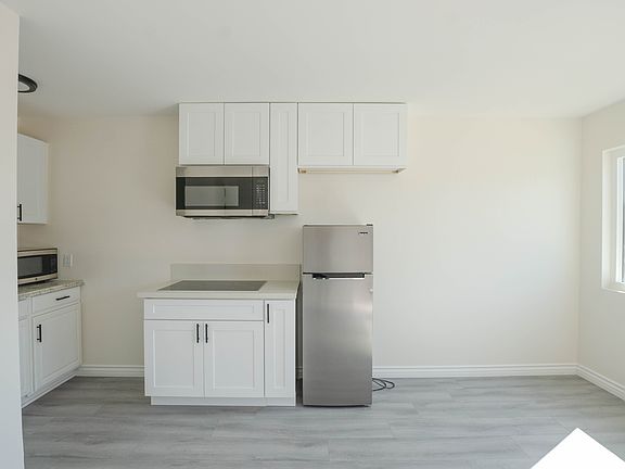 This studio apartment has been fully remodeled from top to bottom; The living room features new flooring, updated lighting, within a bright, open layout that creates a warm and inviting atmosphere. The kitchen stands out with an all-new stainless steel refrigerator and electric range, and is paired with new countertops and modern finishes that give the home a polished look. The bathroom has been completely updated with new tile work, vanity, and fixtures, bringing a clean and contemporary feel throughout. The unit is all-electric and equipped with air conditioning for year-round comfort. There is also a convenient community laundry room on-site for residents.