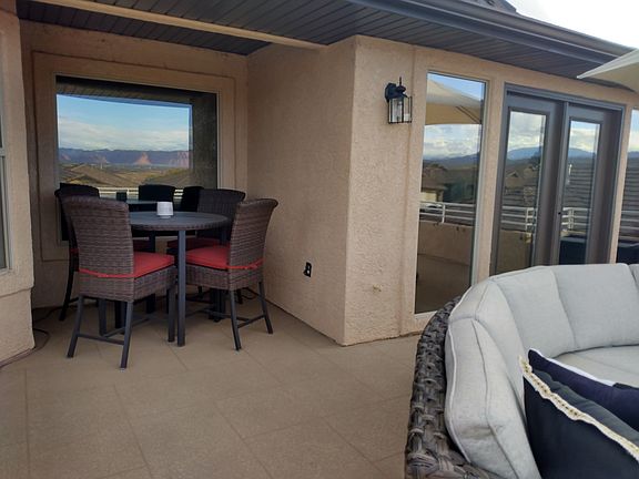 Spacious, remodeled home in the beautiful Legacy at Southgate development with amazing views of Snow Canyon, Red Mountain, and the Pine Valley Mountains. The view has to be seen from the large 600 sq. ft. rooftop deck to appreciate its splendor! (There are 1100 square feet of decks and patios in total.) It's a true lock-and-leave lifestyle home perfect for multi-generational living or hosting extended family. Exterior maintenance is included as are the resort-like amenities. The home has been occupied by the owner for 3-plus years and maintained to a high standard. The home was built in 2005 and remodeled in 2021. There are so many unique and special features not found in many rentals. There are two gas fireplaces (one on the main level and one upstairs in the spacious family room), vaulted and tall ceilings, surround sound, a beautiful second kitchen with granite countertops for entertaining on the upper level, brand new water softener, and whole house filtration system (removes chlorine), tinted view windows upstairs, two smart thermostats, and a 3-car garage with epoxy floors. All the GE stainless kitchen appliances are 3 years old, and the dishwasher has never been used. The main level features a living room, dining room, kitchen with an eat-in area, laundry room, half bath, a spacious 14' x 20' primary suite with a separate jetted tub, a large shower, and a walk-in closet. A 250 sq. ft patio runs the length of the back of the home. The upper level features a large family room, a small kitchen and dining area, 2 bedrooms and 2 bathrooms. There are also unique bump-outs perfect for an office space, workout area, a piano, or whatever your heart desires. The cherry on top is the large 600 sq. ft. rooftop deck over the garage. Another 250 sq. ft. deck is accessed by both upstairs bedrooms off the back of the home. The rent includes the HOA fee, which covers landscaping and maintenance, water usage, a spacious indoor pool with two hot tubs, a gym, a game room, a library, a meeting room, an outdoor pool, tennis, four pickleball courts, basketball, and shuffleboard. It's a true resort lifestyle in a quiet, friendly neighborhood on a private cul-de-sac street. In addition, the Southgate golf course is just down the street for an easy round of golf. The location is ideal. It's close enough to the highway to reach any destination quickly. All the newly added amenities and shopping on the southwest side of town are easily within reach. The home can be partially furnished or unfurnished, depending on your needs. One small dog under 30 pounds will be considered on a case-by-case basis. *No smoking/vaping *$35 per adult application fee *First and last and a $1500 deposit *700 and above credit score is preferred *The owner is also the manager. The owner pays for water and HOA amenities. The minimum lease is 6 months. First and last month's rent plus a security deposit is required. There is a $35 application fee per tenant 18 and over.