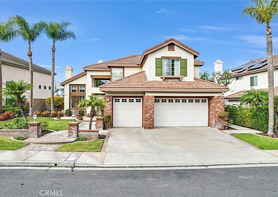 This upscale estate home with 4 bedrooms, 3 baths, office+ loft, 3-car garage, 3246 sqft, situated in the gated prestigious Westhills Community awaits a family that will surely enjoy and appreciate all the amenities the home has to offer. Empressive from the curb with beautiful landscapes, the double doors entry invites you into an elegant space with two-story ceiling in the entryway and living room, along with voluminous crystal chandeliers, gorgeous stone medallions, and gleaming travertine floor. The main level features a formal living room with a stunning custom fireplace mantle and a beautiful wall mirror that shall impress you. The French doors open to a wonderful view backyard. Nice-sized library/office with open walls is conveniently situated in the hallway near the entry door. The formal dining room offers tremendous elegance in dining. Entertaining made easy in the highly upgraded kitchen with gorgeous marble counters, stone backsplash, eating nook, and further stepping out to the BBQ center at the corner in the private backyard. Adjacent to the kitchen is a family room with built-ins and handsom wood floor in rich hue. This floor also includes a downstairs bathroom exceptionally upgraded with extensive use of marble, and a laundry room with lots of cabinet and wash basin. A spacious loft that greets you off the upstairs landing serves mutiple purposes. The primary suite features a large balcony with views of Vista Del Valle Park, city lights, sitting area, and two large walk-in cedar closets. The primary bathroom with all the luxury details and decorator touches features a sumptuous soaking tub adjacent to a large shower room. The private view backyard with sparkling pool/spa and BBQ center is entertaining and relaxing. The newly installed high grade carpeted floor (stairs & 2nd level), freshly painted interior walls & kitchen cabinetry, and the new faucets in the primary bathroom provide utmost comfort in living. Convenient to business centers, shopping, parks, and golf course. This home is the best luxury living in OC for its competitive rent. Ready for move-in. Dont miss out.