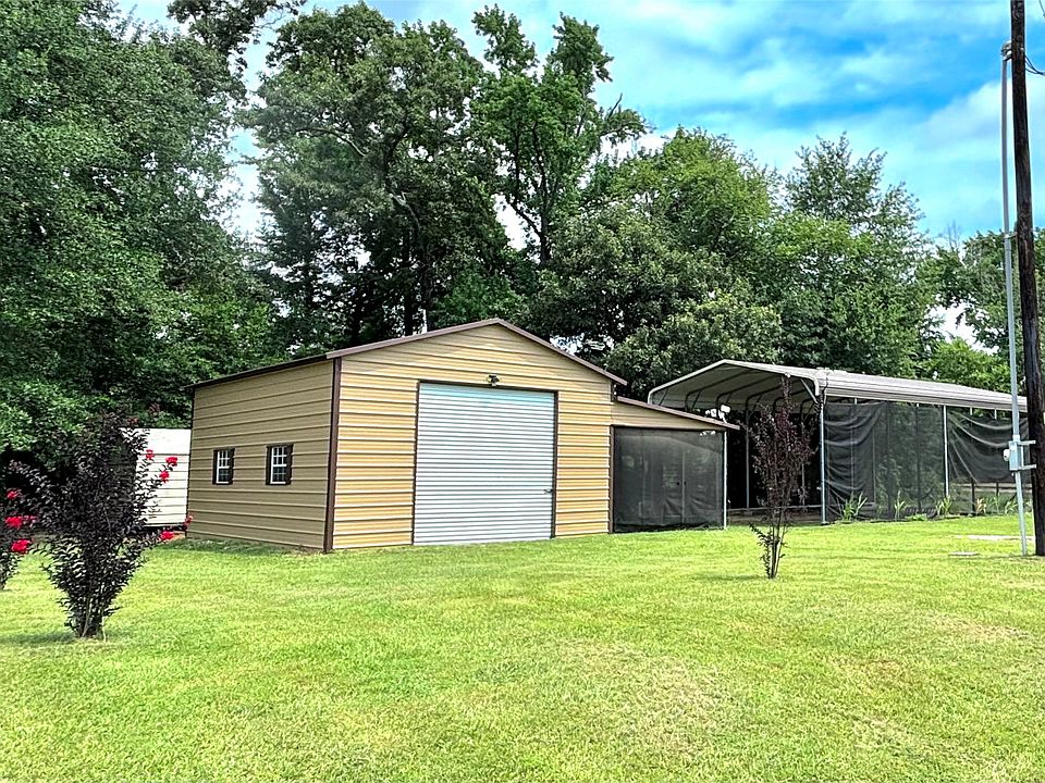Enjoy lake life in this unique corner parcel totaling 0.42 acres, this property combines three lots nestled within the gated community of Holiday Villages of Fork. With direct waterfront access, a private community boat ramp, and a large covered fishing pier, you’ll be reeling in bass and crappie in no time. Surrounded by mature trees and bordered by a tranquil creek, the setting feels like a private retreat. The front yard is landscaped for curb appeal, while the backyard invites relaxation beneath a canopy of trees. Thoughtfully improved, the property features a 20’ x 26’ garage with a 12’ x 26’ lean-to, equipped with a dedicated breaker box, 110V outlets, lighting, and a 10’ x 10’ roll-up door—ideal for lake gear, a workshop, or extra storage. Includes a 40’ x 24’ RV cover equipped with a 50-amp hookup and dedicated sewer sump pump—ideal for full-time RV living. Additional enhancements include a 10’ x 12’ workshop with electricity and water, plus an on-demand propane water heater—perfect for hobby use or utility needs. Low HOA dues of just $52 month include access to a wide range of resort-style amenities, including stocked fishing ponds, a saltwater swimming pool, multiple playgrounds, a basketball court, horseshoe pits, and covered picnic areas with BBQ grills. The community hosts a full calendar of events—from holiday celebrations and monthly potlucks to bingo nights, painting classes, and weekly social clubs—creating a vibrant and welcoming atmosphere year-round. Community water is supplied through a dual well filtration system, and sewer service each begins at just $65 per month plus usage. High-speed internet is available via both satellite and fiber-optic providers. This is your chance to create a peaceful retreat or a vibrant, income-producing property in one of Lake Fork’s most amenity-rich communities.