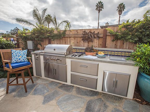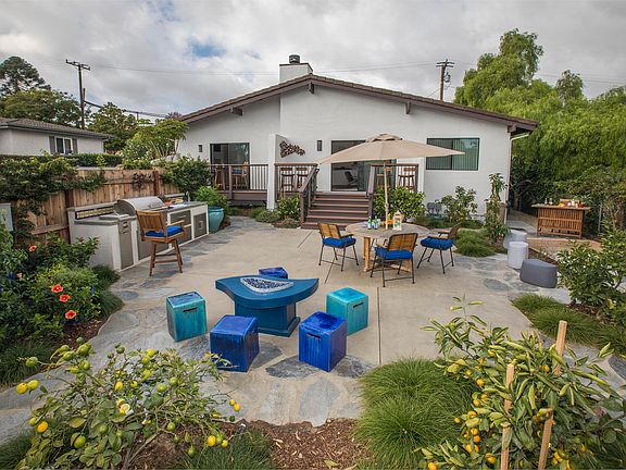 FURNISHED RENTAL AVAILABLE BEGINNING JUNE 1: Beautifully renovated Mesa home featuring luxurious touches and comfortable indoor/ outdoor living spaces. Sunny, open living space includes a cozy fireplace and dining area which seats up to 6 guests. The gourmet kitchen is fully stocked and features professional quality stainless steel appliances. The backyard is fully equipped for a day of fun with a built-in barbecue and outdoor kitchen, swim spa/ hot tub, fire pit, bar area, outdoor table, and bocce ball court. There is every amenity needed to enjoy the warm, sunny days of Santa Barbara or the cool evening ocean breezes. It even has a peak of the ocean! Pricing varies by season. Sleeps up to 7 in three bedrooms.