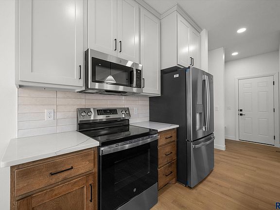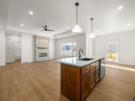 Welcome to this new build in Harrisburg packed with all the perks of an existing home! This stunner already comes with sod, sprinkler system, landscaping, a 6 ft vinyl fence, and a heated garage. The main level offers 3 bedrooms, 2 bathrooms, and a thoughtfully designed open-concept layout. Enjoy the modern feel throughout, including a kitchen with quartz countertops, tile backsplash, a mix of stained and painted cabinets, and a walk-in pantry. The living room features a stone fireplace with a modern touch. The primary suite includes a double vanity with quartz countertops and a spacious walk-in closet. To top it off, a covered deck overlooks the backyard. The basement is framed and roughed-in, making future finishing simple. Check it out today!