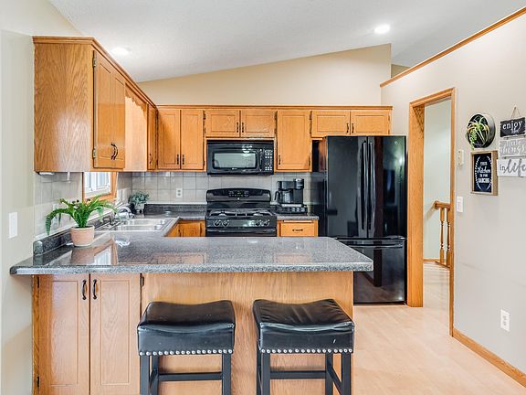 This beautifully maintained home blends comfort, style, and functionality in all the right ways. From the moment you walk in, the vaulted ceilings create a bright, open atmosphere that carries through the living, dining, and kitchen areas, giving the entire upper level a wonderfully spacious and connected feel. Laminate flooring adds warmth and durability, making the main level both inviting and easy to enjoy.